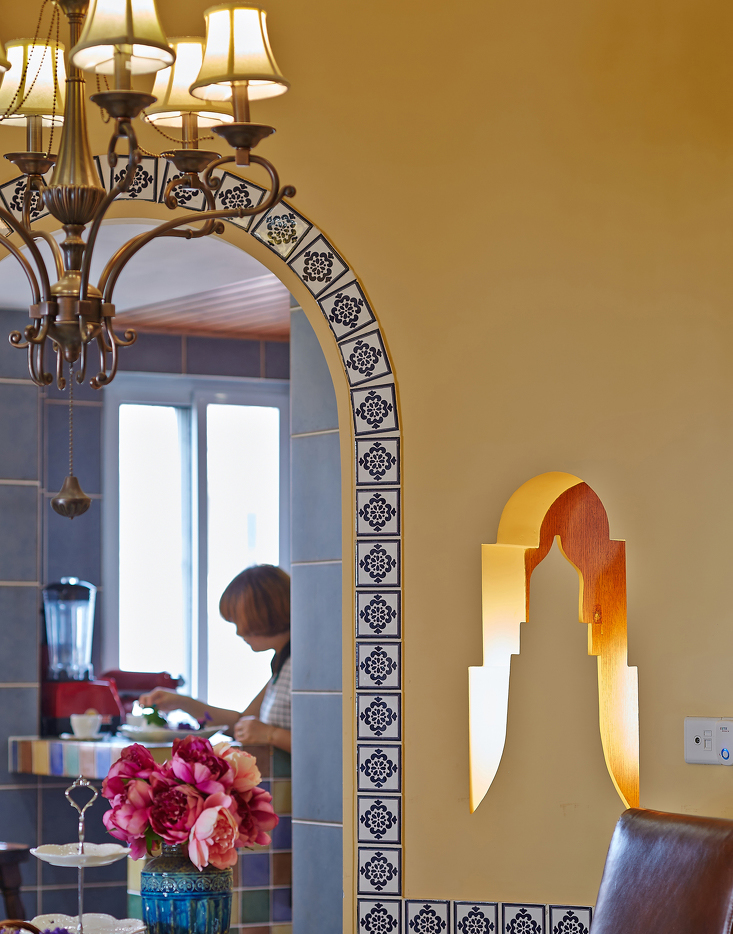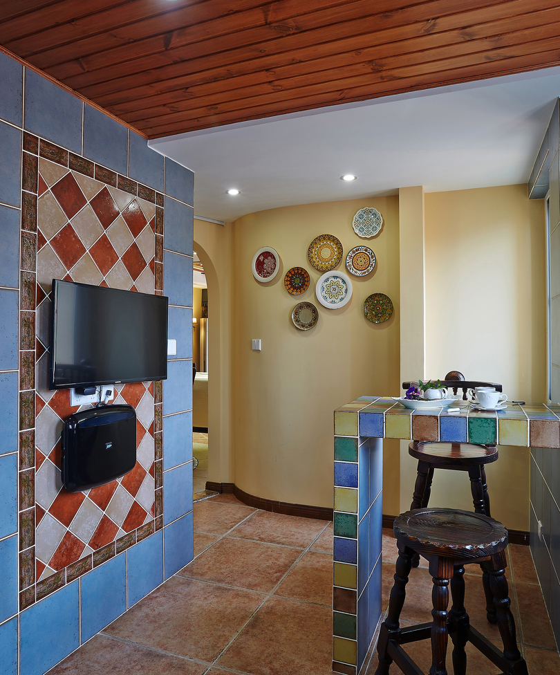 人們把摩洛哥這個稱為“北非花園”。具有異域風情的摩洛哥風格,裝飾華麗是它的特色。這個空間則以精致雕刻的線條,色彩活潑的瓷磚,創意獨特的吊頂,夢幻般神秘的臥室,令其充滿異國情調,又充斥著溫馨的氣息,它用自己獨有的顏色來表達對生活的熱情和歲月的沉淀。