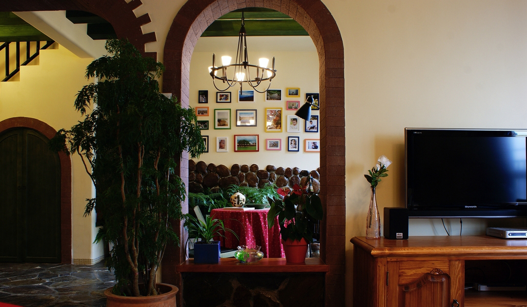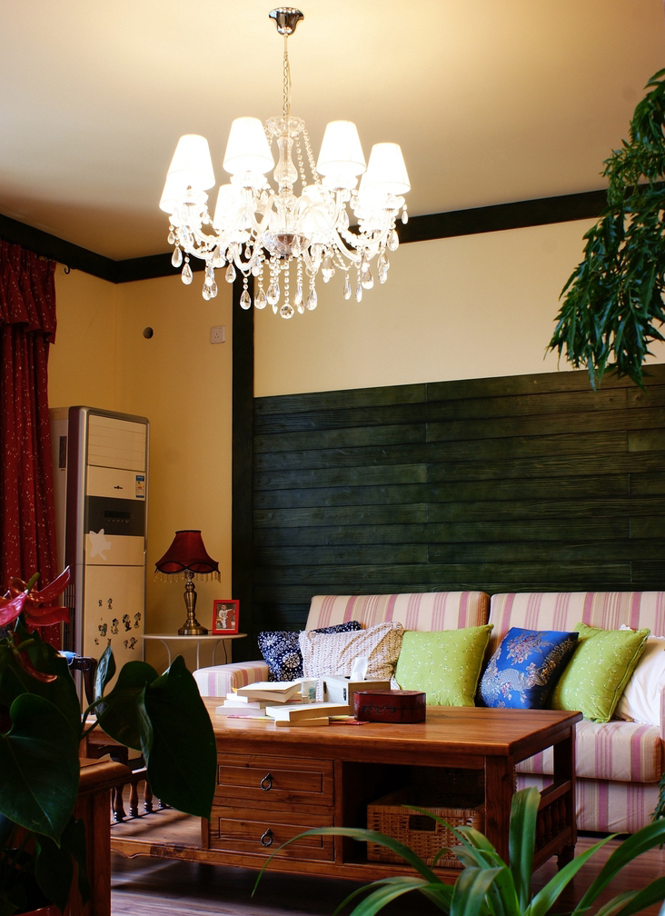 “北緯23.5度、南緯23.5度之間,分布著綠色宮殿般的熱帶雨林。從散布巖石小山的低地平原,到溪流縱橫的高原峽谷,參天的大樹、纏繞的藤蘿、繁茂的花草...多樣的地貌和植物,交織出形態萬千的雨林景觀...” “熱帶雨林季風氣候下,磚紅壤以顏色類似燒制的紅磚而得名。”整個設計思路,由熱帶雨林的這兩個特征全面展開...... 業主愛蜜蓮熱愛大自然,花草,書籍,電影,音樂...“軟裝飾設計環節”中的每樣配飾都極為重視和熱心(這是形成一個完整設計作品的關鍵環節)。步入愛蜜蓮的家,像進入一片熱帶雨林,大朵大朵花兒凝成了“熱情”的窗簾、沙發和臺布,精心挑選的植物和墨綠的原木裝飾,流動著綠意盎然的自然主義休閑精神......