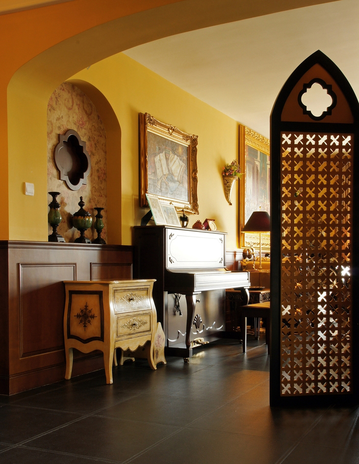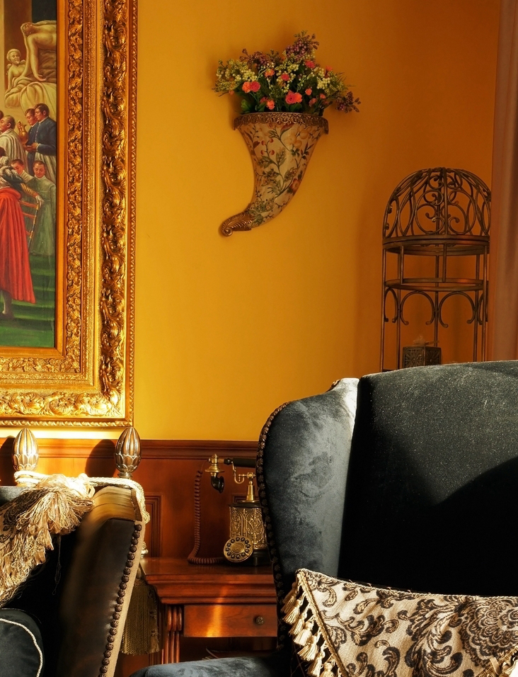 *皇家貴族* 語(yǔ)出業(yè)主Angel:“御金香,這個(gè)好,有氣派,有皇家貴族的味道...” 篩選作品名字時(shí),我拿出幾個(gè)備選名,與Angel逐個(gè)淘汰后,鎖定《御金香》。 *風(fēng)格大跳躍* 與之前的作品《珊瑚島奇遇記》不同,這次的設(shè)計(jì)風(fēng)格跳躍很大。Angel家適合美式風(fēng)格,可能跟Angel之前長(zhǎng)期生活在美國(guó)有關(guān)系。設(shè)計(jì)過(guò)程中我還在想,可否“植入”中式古典元素,做成“形散神不散”的后現(xiàn)代混搭風(fēng)格。自從在“加洲地帶”選定床和衣柜款式后,我立馬打消了這個(gè)念頭。最后只是象征性地在茶幾旁邊植入兩張中西合壁的陶瓷凳。 *暴發(fā)戶* 語(yǔ)出Angel的先生:“導(dǎo)火牛。不會(huì)是那個(gè)顏色吧?太暴發(fā)戶了,我不要暴發(fā)戶的感覺(jué),很土。” 當(dāng)客廳墻裙還是半成品時(shí),Angel的先生以為是成品油漆的顏色,指著墻裙納悶地說(shuō)道。 我馬上重復(fù)在工地經(jīng)常說(shuō)的一句口頭禪:“是半成品。還沒(méi)上好顏色。”整個(gè)設(shè)計(jì)完成后會(huì)凸顯歐洲貴族氣。 *拿破侖他老媽呢?* 沙發(fā)背后的巨幅掛畫(huà),由于畫(huà)師的“偷工減料”,拿破侖加冕圖上的另一關(guān)鍵人物--拿破侖的老媽不在畫(huà)中。 我們又跑回油畫(huà)村,重新?lián)Q了一幅人物更飽滿的拿破侖加冕油畫(huà),同時(shí)將18厘米的畫(huà)框加大成22厘米。氣勢(shì)立竿見(jiàn)影。 *波斯王子* 波斯王子、異域風(fēng)情、蝴蝶夫人、神秘尼羅河... 無(wú)論以怎樣的角度審視,客廳沙發(fā)傳達(dá)出每個(gè)細(xì)節(jié)的氣質(zhì)都耐人尋味。 在不少家具賣場(chǎng)看過(guò)一些山寨版。都沒(méi)有這樣的神韻。 *夏威夷瀑布* 客房的藍(lán)色條紋布、青果色墻漆、米白吊扇..... 太陽(yáng)照在“鋪滿鮮花”的床單上,夏威夷的夢(mèng)停靠在傾瀉的窗紗上... *韓版青春美少女* 語(yǔ)出Angel的QQ簽名款,這是她給女兒房的定義。女孩房的風(fēng)格定位與客廳、書(shū)房的絕然不同。 根據(jù)年齡的劃分,每個(gè)家庭成員都可以匹配屬于自己的個(gè)性空間。仍是“以人為本”的設(shè)計(jì)核心理念。